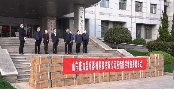 捐贈儀式上,山東康力醫(yī)療器械科技有限公司通過市紅十字會,定向捐贈了N95口罩2萬只、醫(yī)用外科口罩10萬只以及防護(hù)服2000套,并在第一時間運(yùn)送到了抗疫一線。
