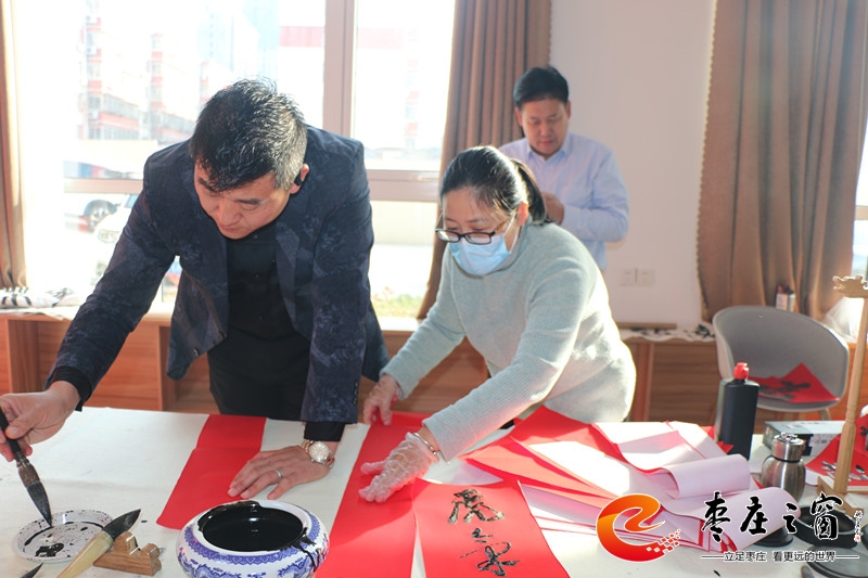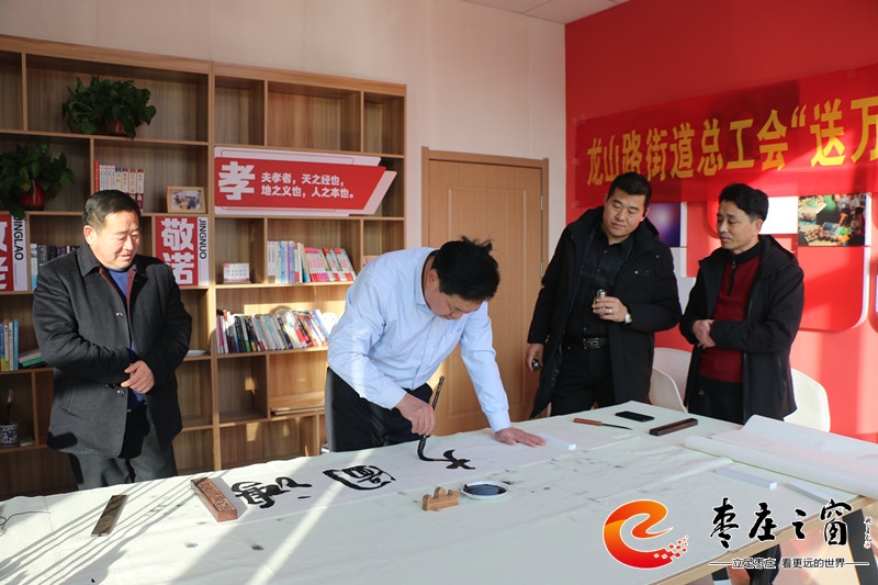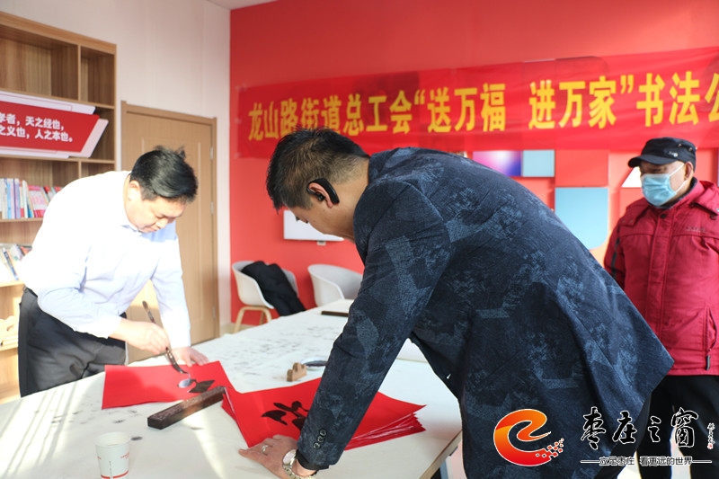 “給大家送‘!!”伴隨著新年的祝福,龍山路街道總工會(huì)的工作人員們正將書法家們寫好的一張張福字雙手遞給在場(chǎng)的職工。1月16日上午,市中區(qū)龍山路街道總工會(huì)在公勝街紅色驛站組織開展“送萬福 進(jìn)萬家”書法公益活動(dòng),邀請(qǐng)省書法家協(xié)會(huì)的4位書法家代表,在活動(dòng)現(xiàn)場(chǎng)手寫福字和對(duì)聯(lián),為廣大職工群眾以及轄區(qū)企業(yè)送去新春的祝福和問候。