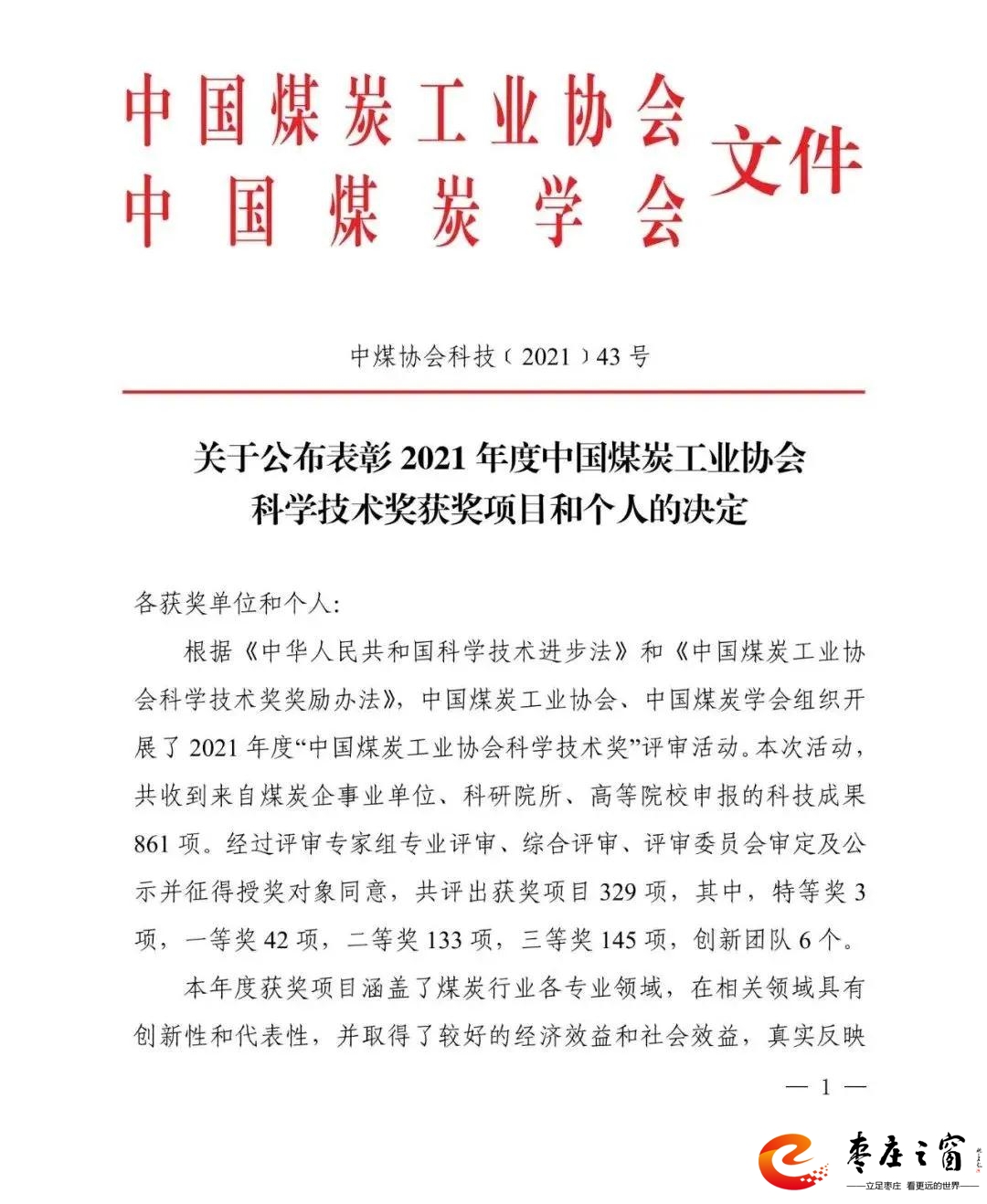 喜訊!田陳煤礦兩項(xiàng)科技成果榮獲2021年度中國煤炭工業(yè)協(xié)會(huì)科學(xué)技術(shù)獎(jiǎng)